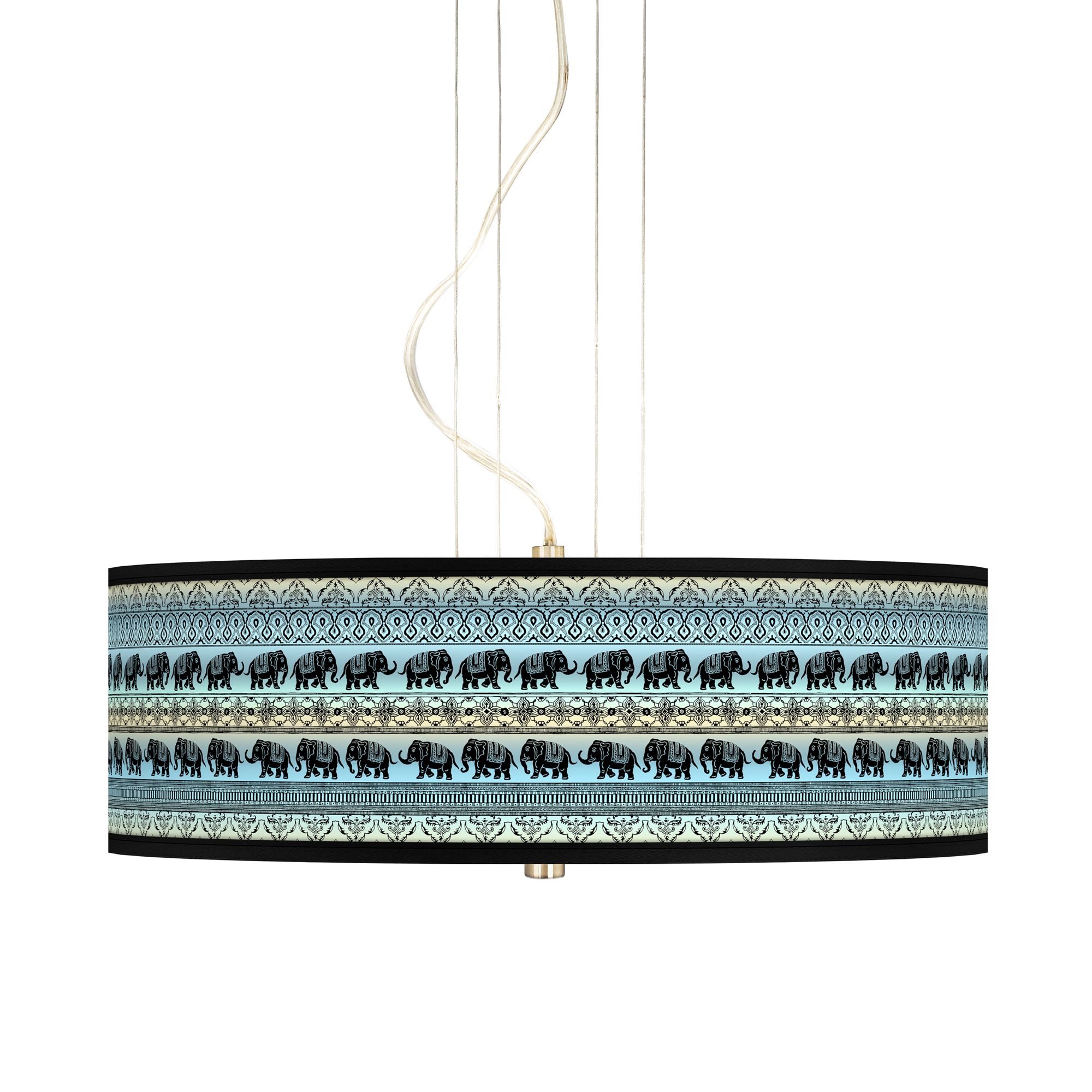 This drum shade pendant chandelier features an exclusive Braided Jute pattern printed on the shade. The design has a simple, modern look great for kitchens, dining rooms, or other spaces. A white acrylic diffuser at the bottom of the shade prevents glare. Includes extra cable and cord so you can adjust hang height. Shade printing process U.S. Patent # 7,347,593.