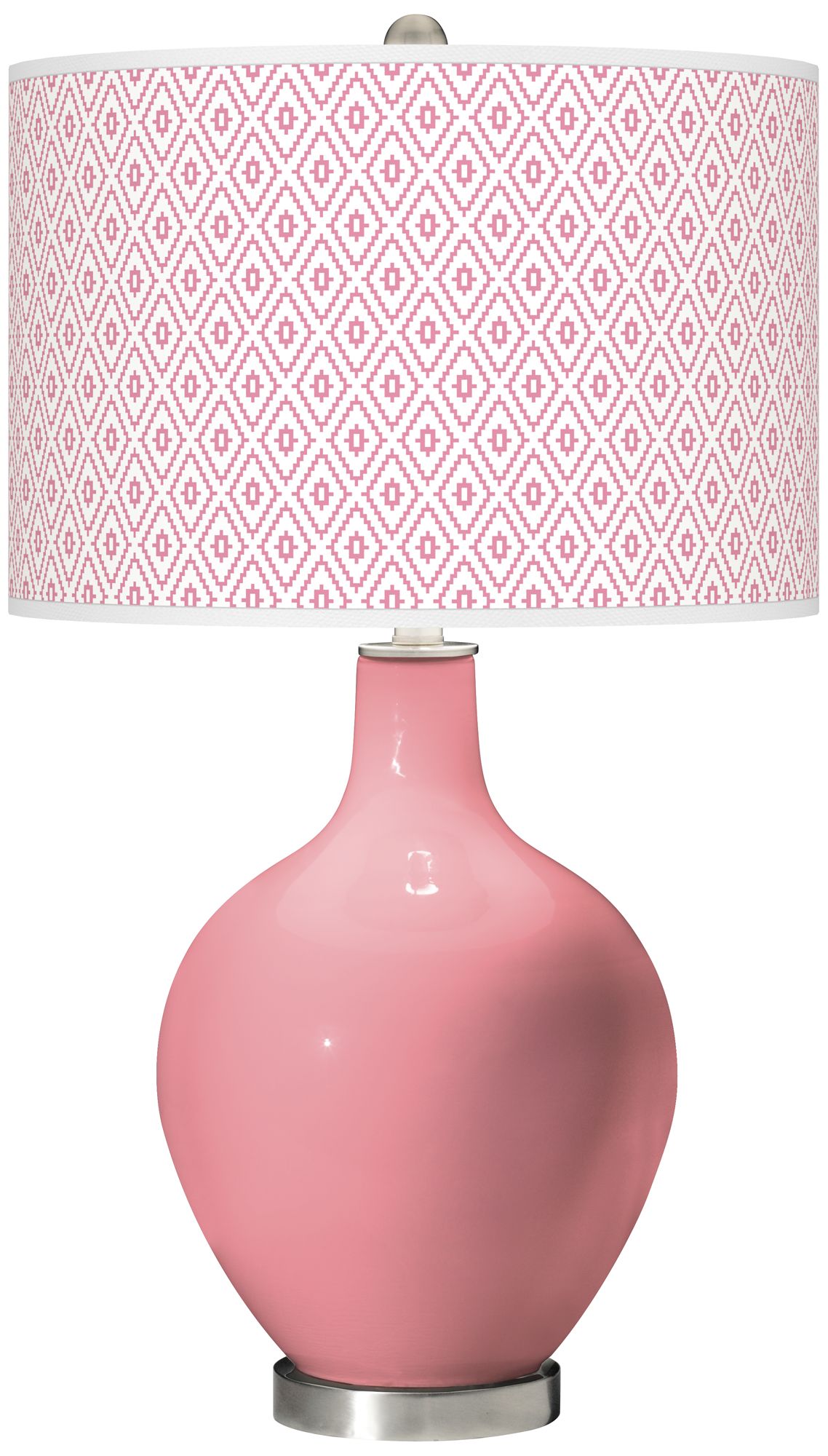 Let this adorable Oopsy Daisy polka dot and pink roses table lamp play an integral role in your child's room design. The light serves many purposes, from providing comfort in the dark to lighting up the pages of a bedtime story. The playful shade sits atop a colorful and quirky resin base for a look that is sure to deliver brightness and smiles.