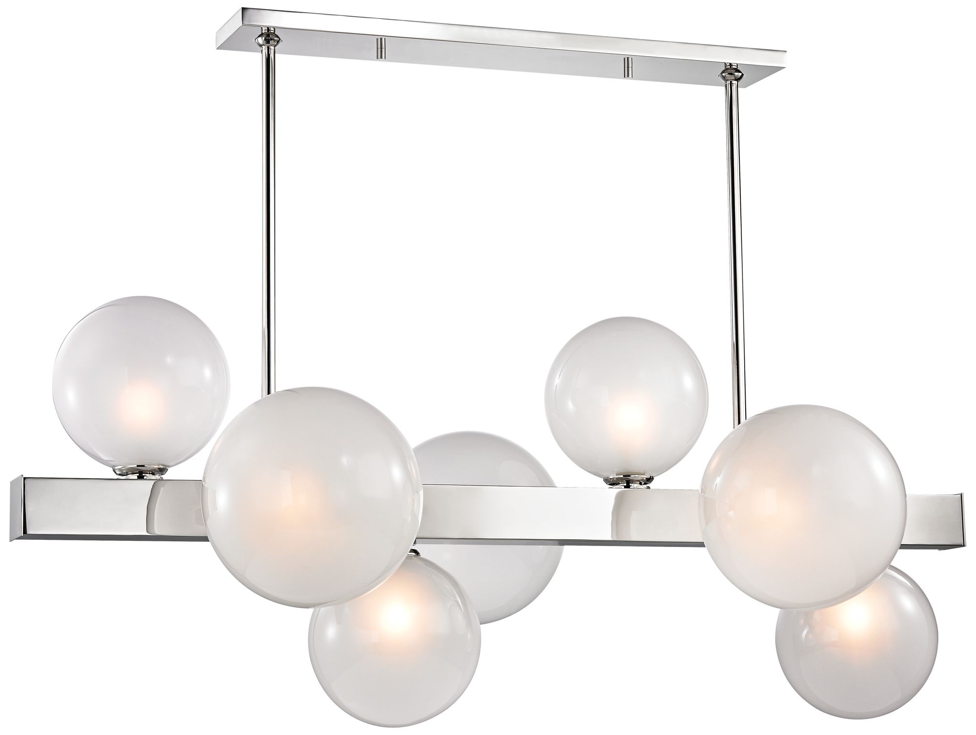 Add a wistful note with the polished nickel finish over aluminum construction in this Cascade island pendant. Brilliantly lighten any space with the clear hand-cut K2 crystal end caps. Create a daydream mood in a modern space with smooth and continuous dimming.