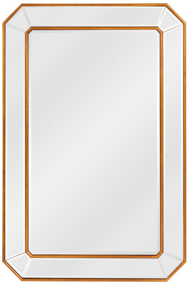 Decorate any space in your home with this versatile and easy to place beveled wall mirror. The beveled panels create beautiful dimension as the outer border in a gold leaf finish. Hang vertically or horizontally.