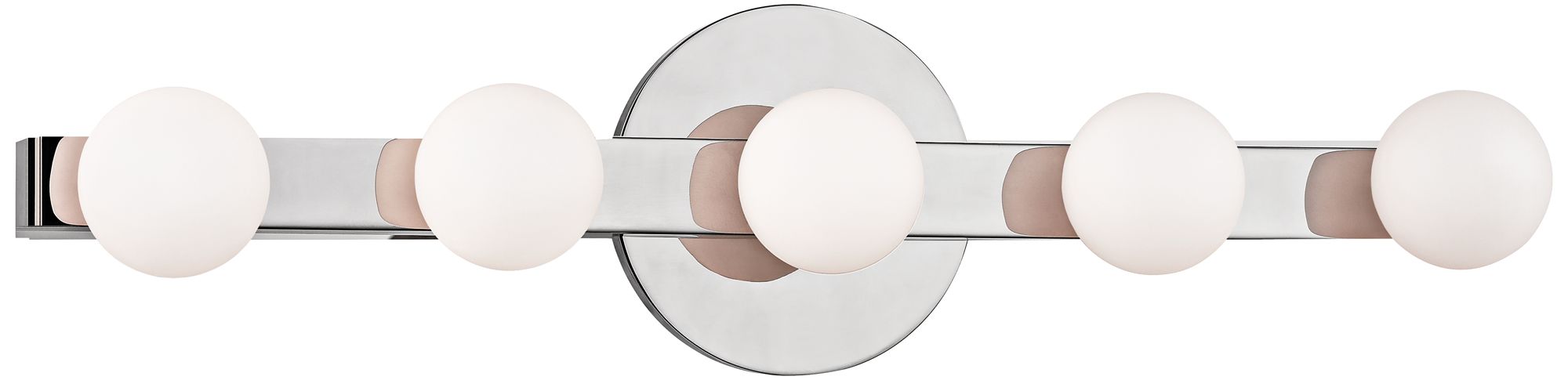 Each opal glass container on this three-light bath fixture creates a smooth distribution of light. Charming and accented with polished nickel rim capping and a wide backplate, it's a powerful and stylish look. The Basking Ridge is a warm coastal look that will bolster the contemporary appeal of any bath or bath light space.