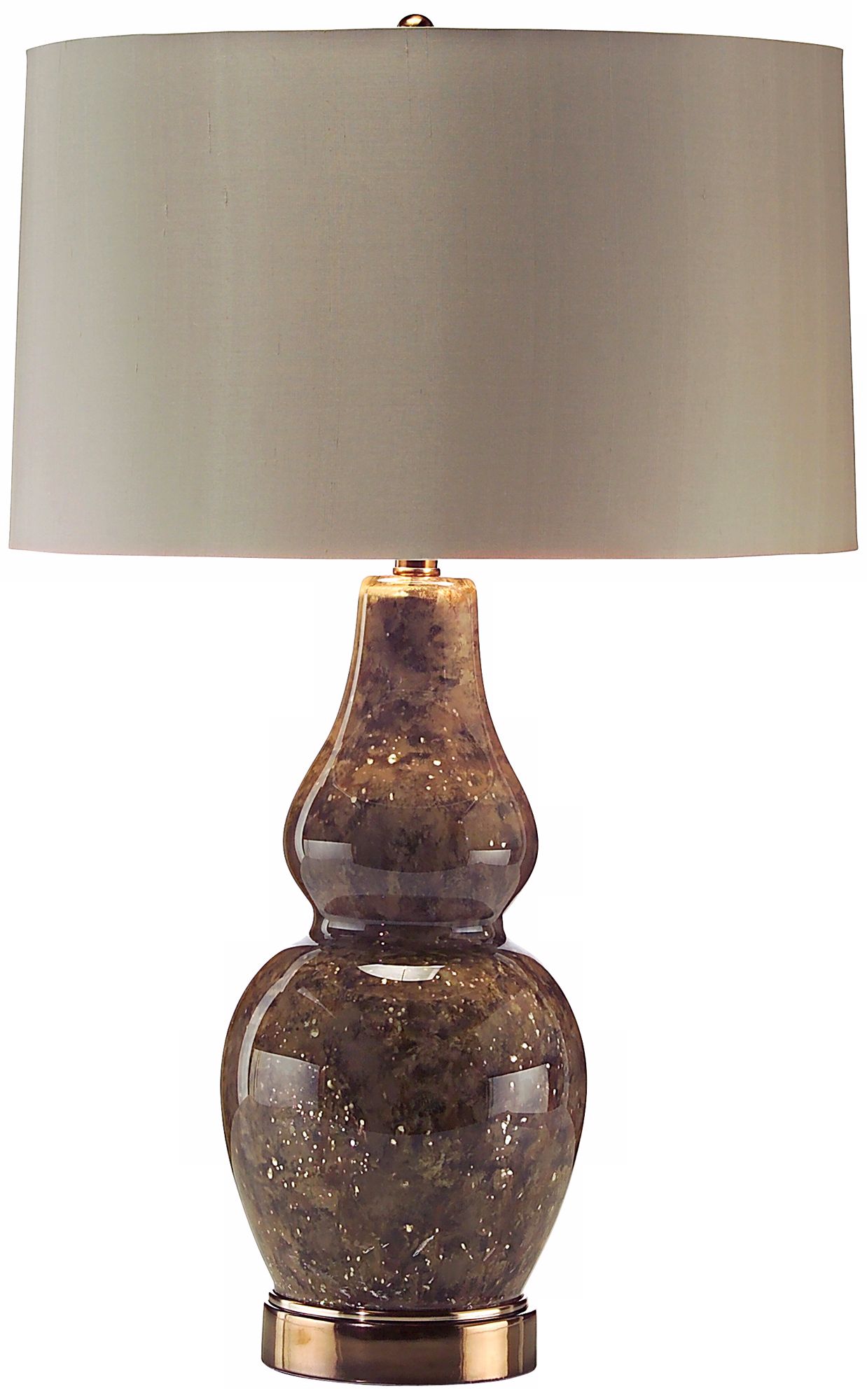 Warm a bedside or counter space with this nautically themed tall porcelain table lamp. Handsomely designed, its base features a hand-painted mustard brown finish and sea creature accents. This table lamp is topped with a beige hardback linen empire shade.