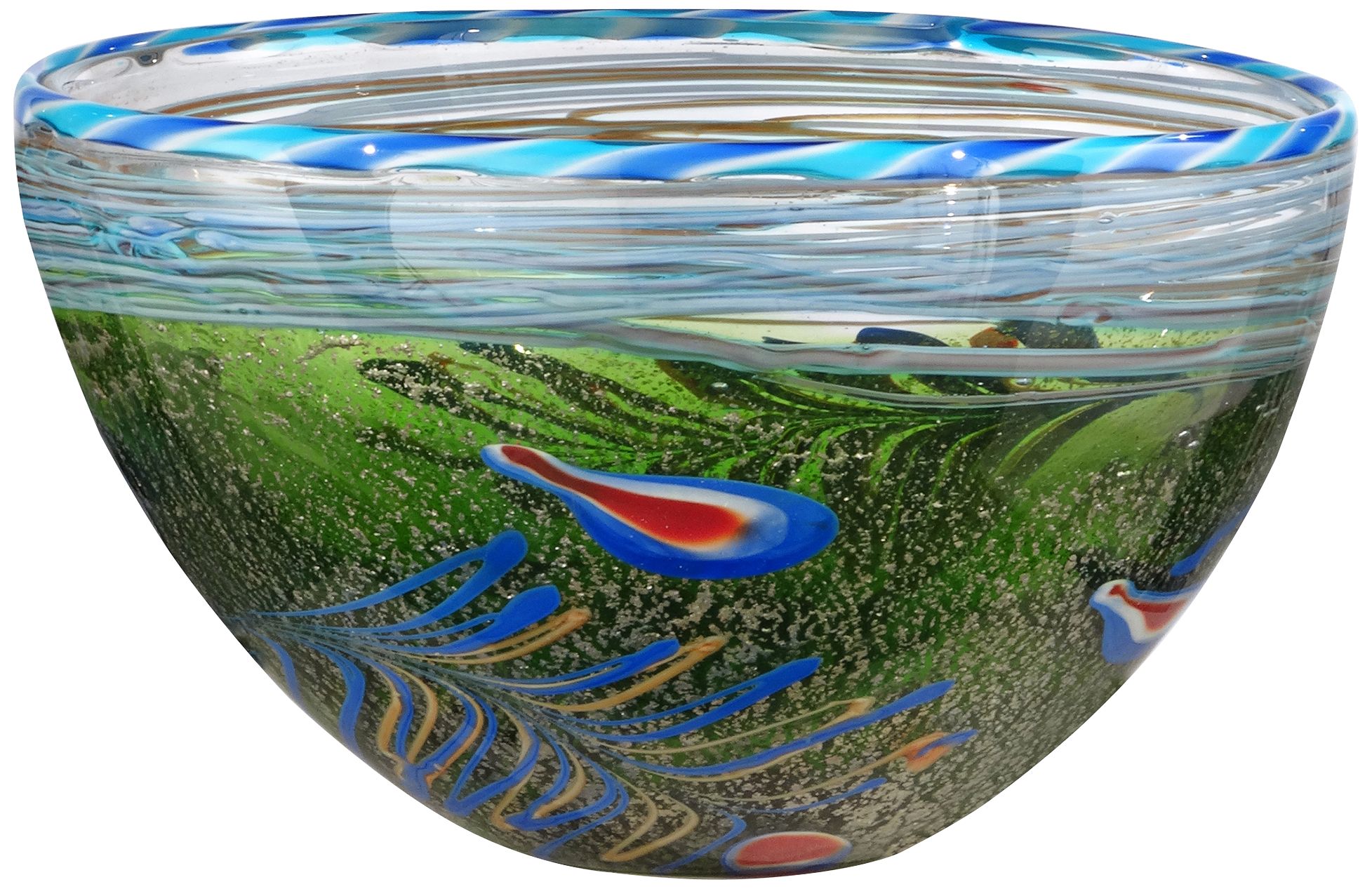 - Hand-crafted seeded glass.
