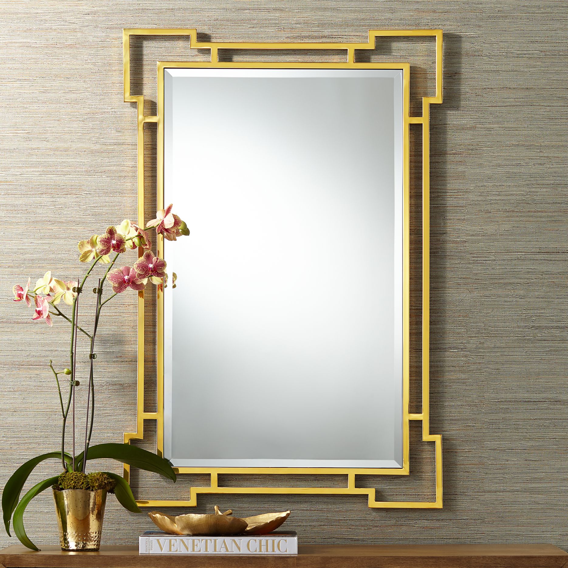 The open design of this wall mirror offers a simple, yet stylish upgrade to a space. A gold finish enhances the open design, as the framing consists of four rods on a circular frame. The round shape is a perfect look to complement contemporary decor. Mount this piece with the rods diagonal or across from each other for a customized look.