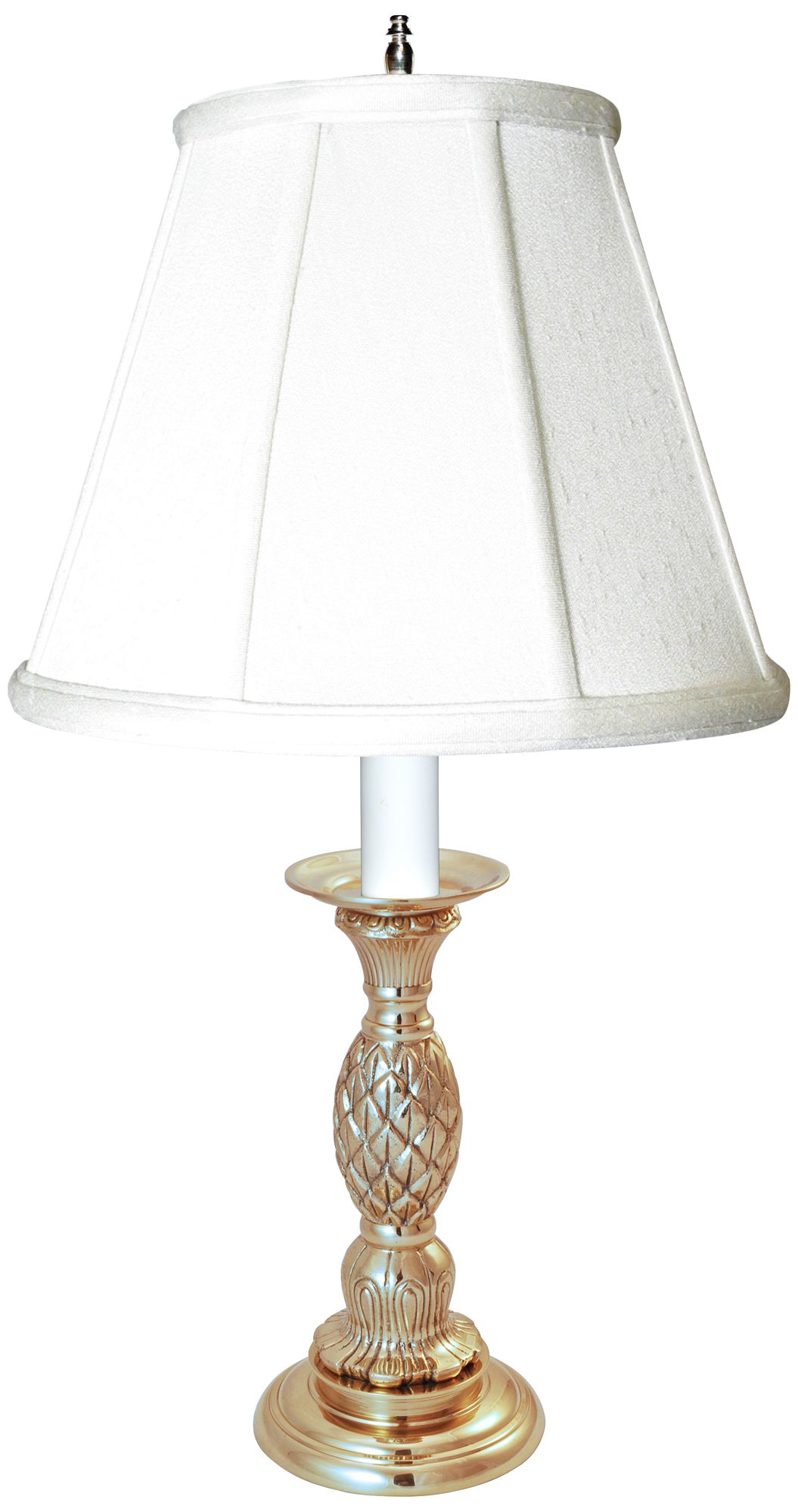 - Weathered distressed finish over polyresin construction. Oatmeal linen rectangle shade with decorative trim and white silken liner.