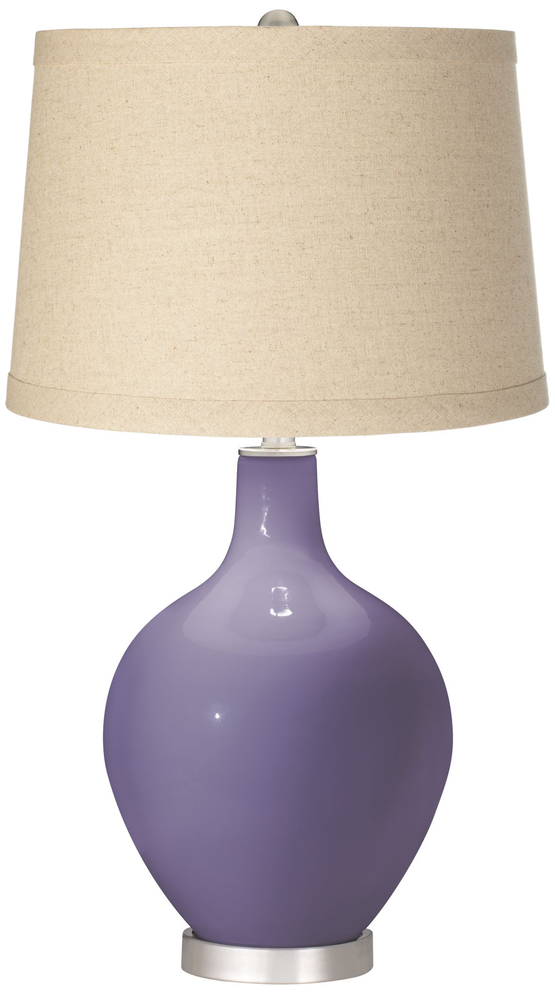 Welcome exquisite color and design to your home decor with this Color + Plus™ glass table lamp. The design is hand-crafted by experienced artisans in our California workshops with a lovely Steamed Milk white cream designer high-gloss finish. The look is topped with a stylish burlap drum shade, and punctuated with contemporary brushed nickel finish accents. Lamp base U.S. Patent # 8,899,798.