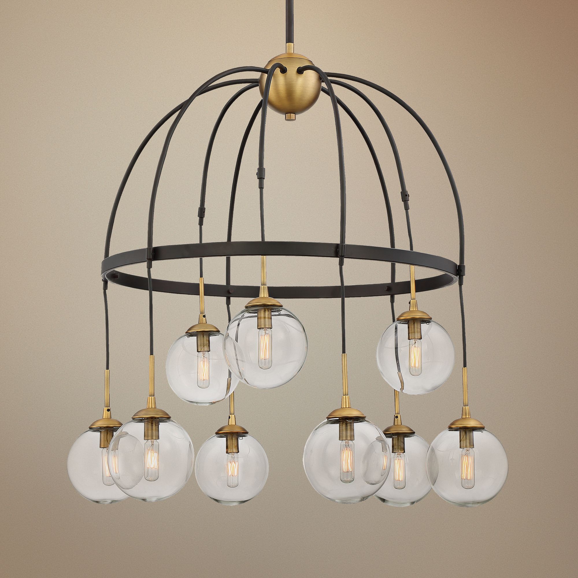 The retro-modern look of this Sputnik-style, twenty four-light classic bronze chandelier from Savoy House will take your decor back to the future. A center orb holds each light at the end of a straight-tube arm, along with short arms capped by a faceted crystal orb accent. Vintage style clear Edison globe bulbs are recommended for this fixture.