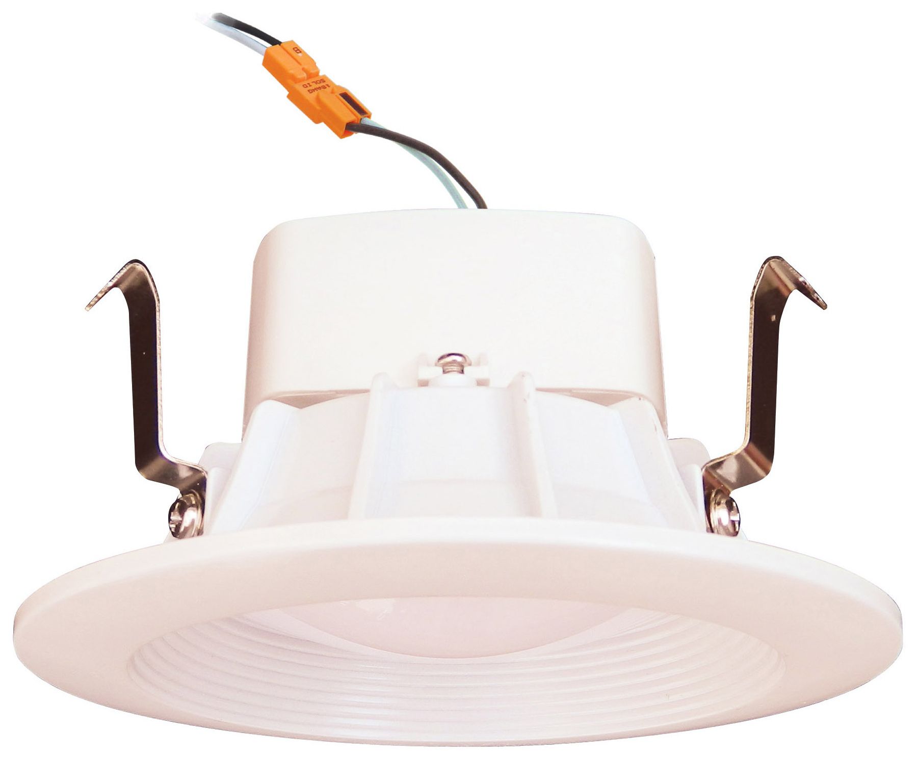 This energy-efficient 10 watt LED retrofit module is set in a 4" round white shell and will replace an equivalent, outdated 60 watt incandescent. The module snaps into place in your existing housing and complies with California T24 residential LED specifications. LED module is dimmable with most standard incandescent dimmers. and suitable for both indoor and in damp locations. Average lifespan of 50,000 hours. Change the look with add-on trim housings in different finishes. From the Cyber Tech LED collection.