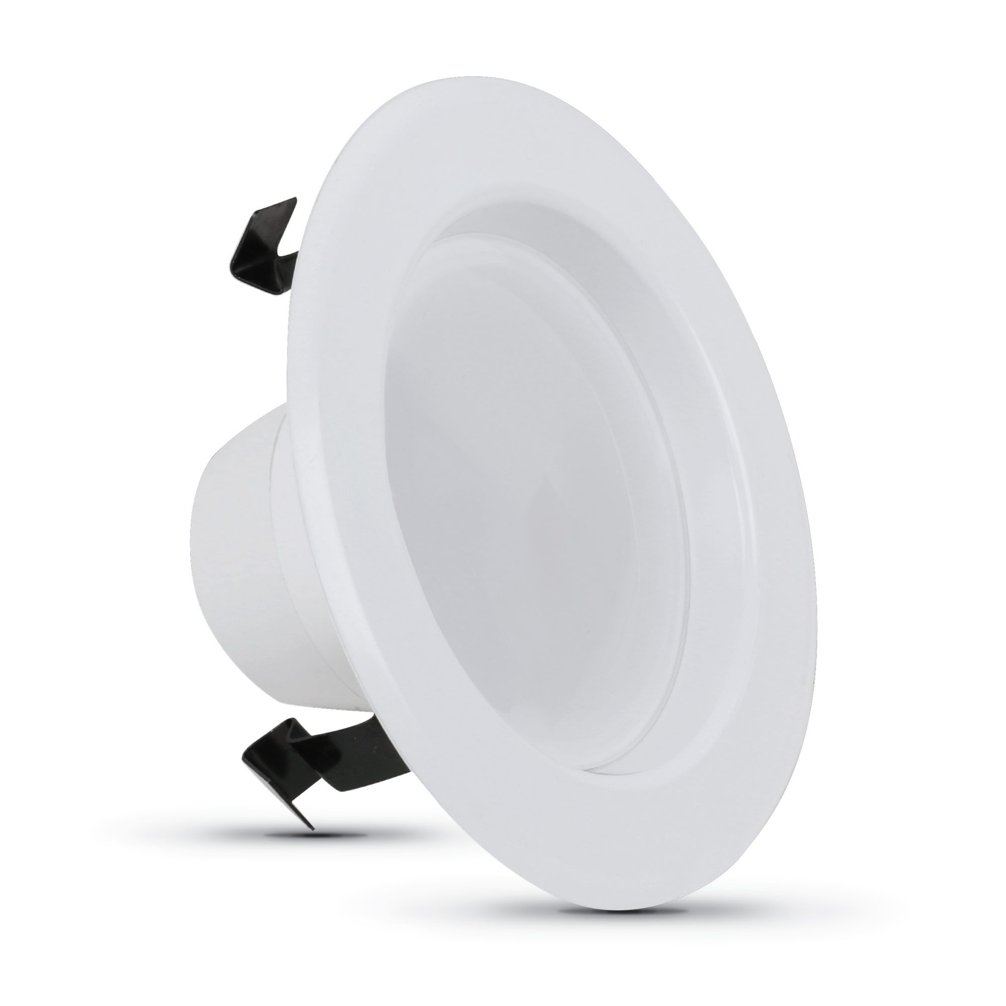 Enjoy green recessed lighting with this energy-efficient 7 watt LED 4" retrofit downlight conversion kit. Use it to replace a 50 watt incandescent and Tunable Down Light from 2700K to 4000K to 5000K color temperature. With a white finish, this aluminum kit has a light output of 540 lumens and CRI 90. Get a clean, classic look that includes trim and a stylish smooth interior. It screws into your medium base socket and is dimmable up to 90 percent. Please note, dimming range varies with multiple fixtures. Compatible with most 6" recessed light housings.