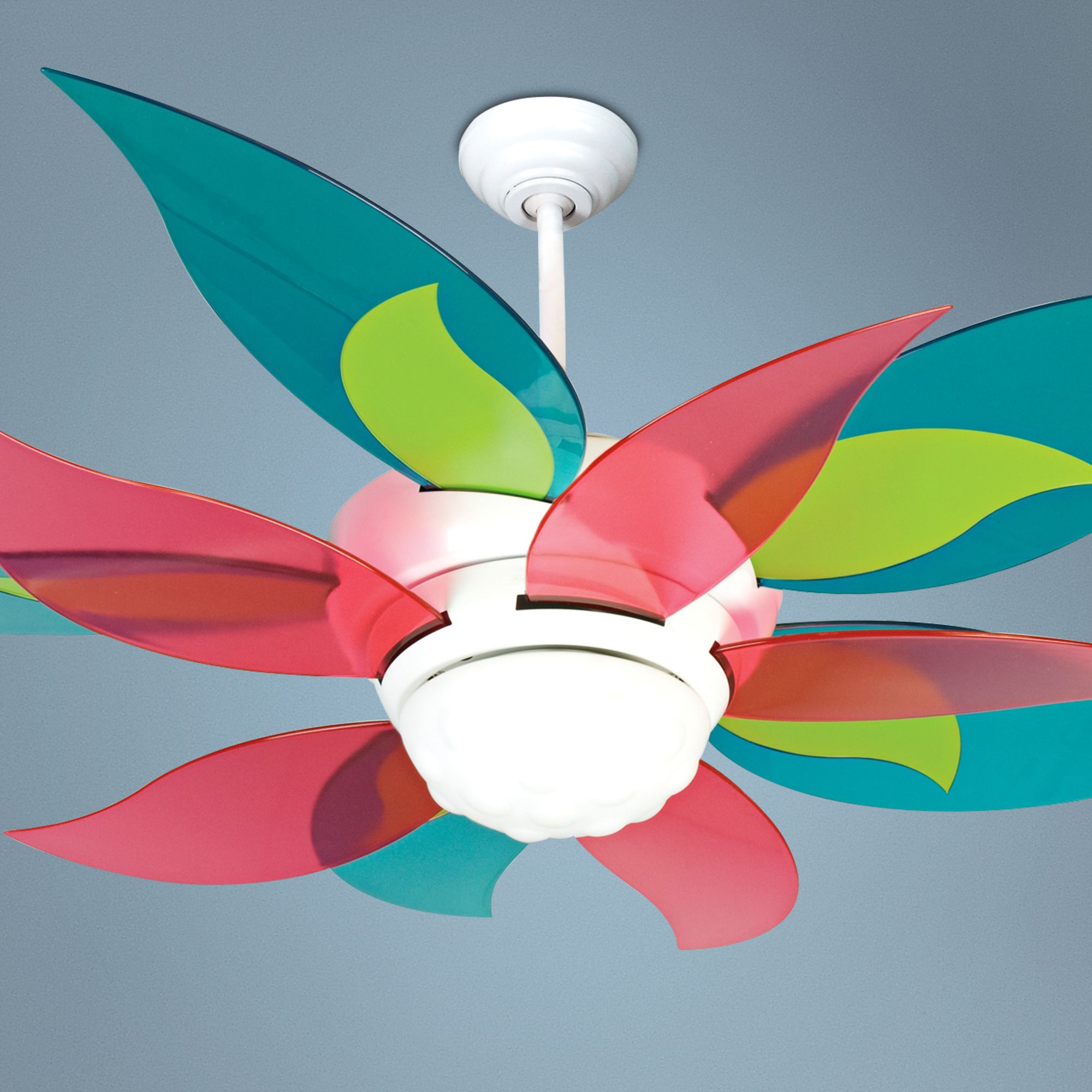 The Bloom ceiling fan from Craftmade has an organically shaped center, completing the flower theme. You can conveniently control this fan using the included remote control. The pink and green blades have a 52" blade span. The integrated light kit includes two energy efficient CFL bulbs. (IMAP)