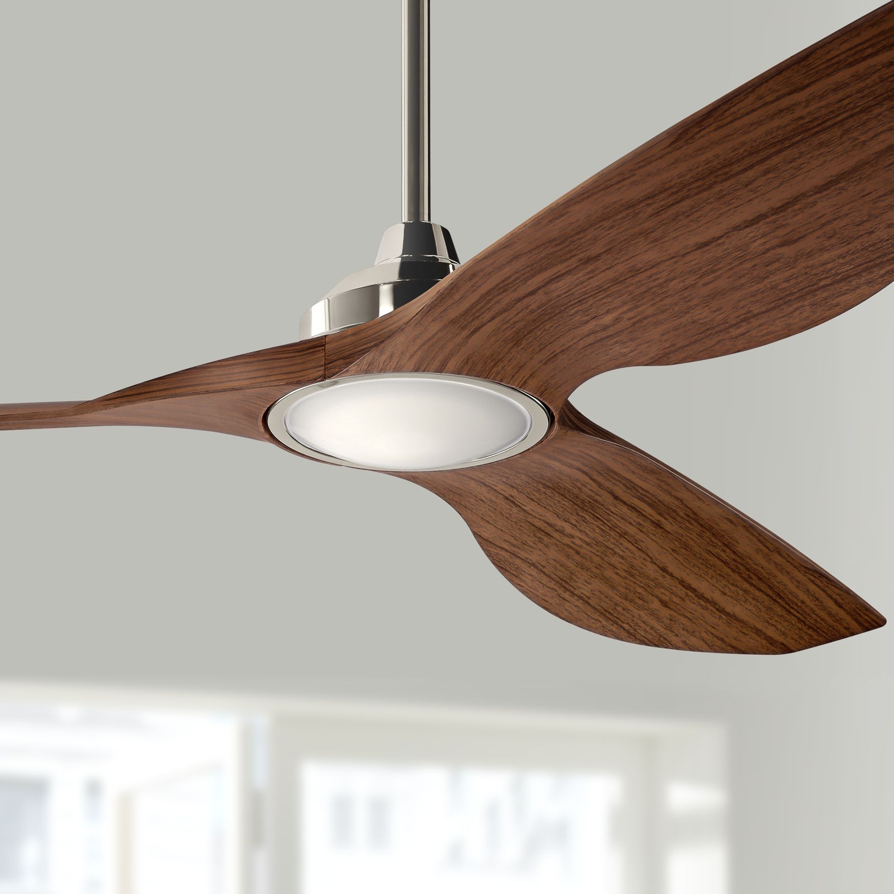Equipped with an energy-efficient LED light, this modern ceiling fan is a versatile choice for your home. Offering stylish presence, this fan features a polished nickel finish motor and walnut finish blades. A white polycarbonate lens included. The result is a contemporary LED ceiling fan design that's perfect for a living room, bedroom, or foyer area. (IMAP)