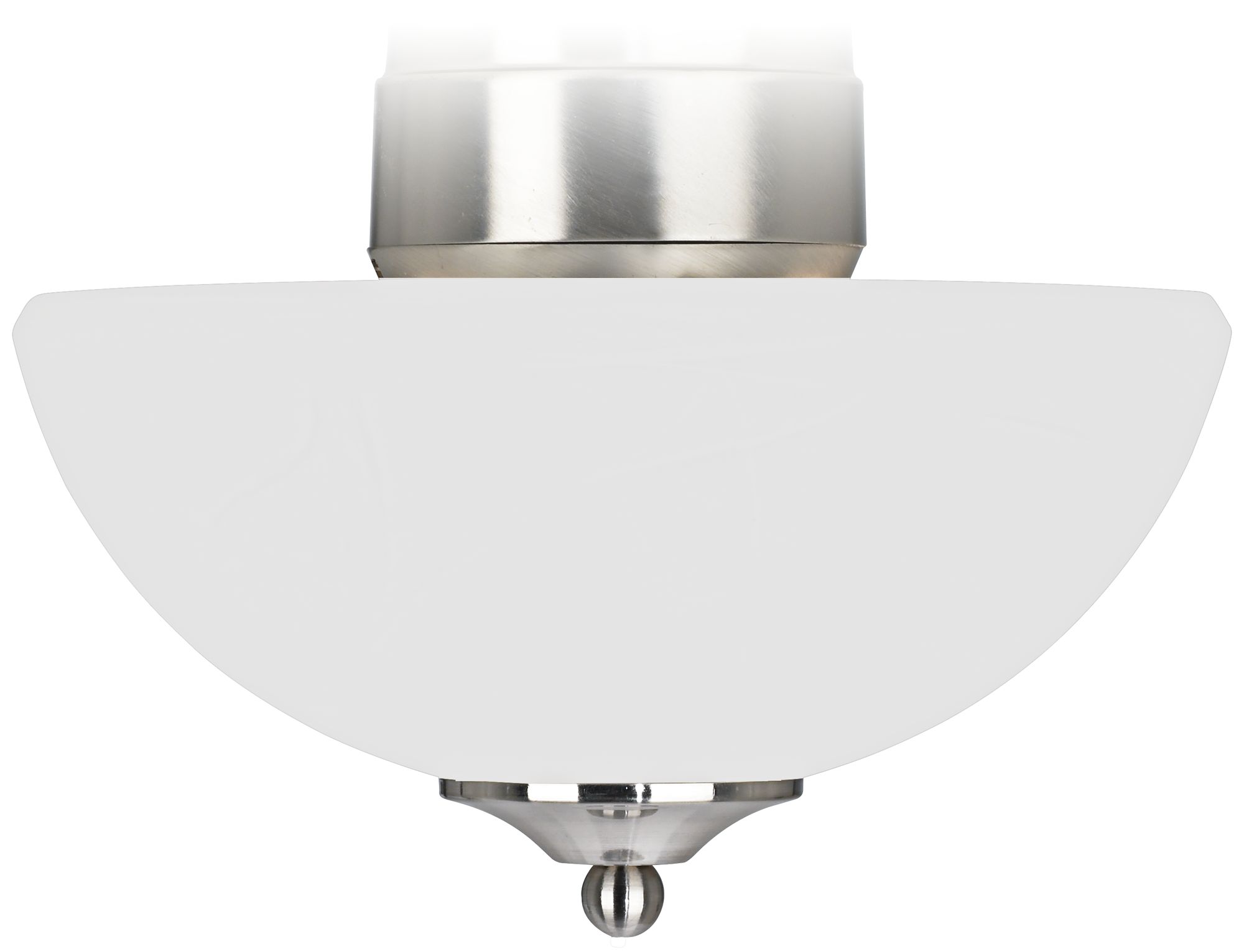 This universal fan light kit is designed to work with most ceiling fans. It comes in a brushed nickel finish, with a beautiful alabaster frosted glass bowl shade that diffuses the lighting. Energy-efficient LED bulbs are included for use.