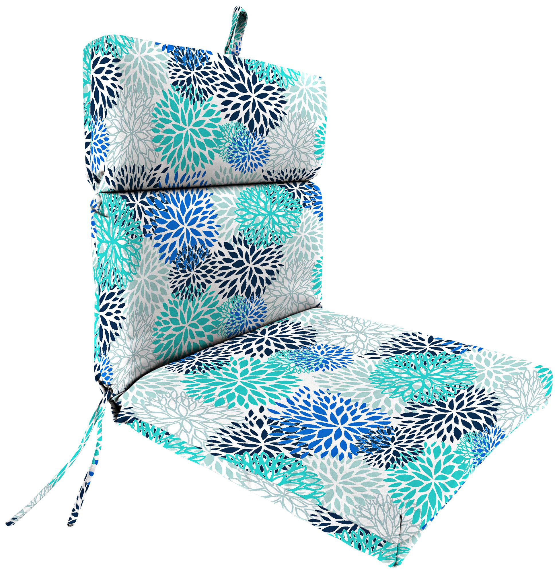 Decorated with a floral blooms pattern with turquoise, gray, and rich blue, this Blooms universal outdoor chair cushion is refreshing and attractive. The French edge provides this cushion with an elegant quality to enhance the lovely design. Made with spun polyester fabric, this cushion is soft and supple for comfort during use.