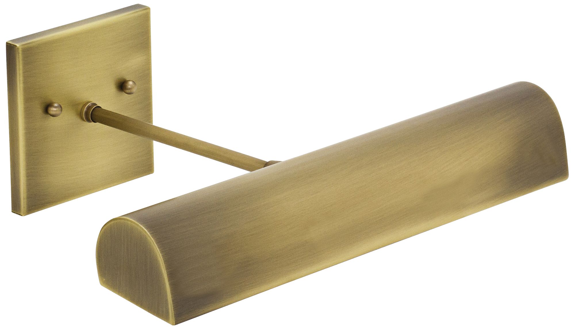 Bring focus to a favorite wall accent with the help of this elegant small direct wire energy-efficient LED picture light from House of Troy. This metal light features a charming, streamlined silhouette beautifully bathed in an antique brass finish. Its traditional shade delicately diffuses its light source, allowing for an even output. Made in the USA.