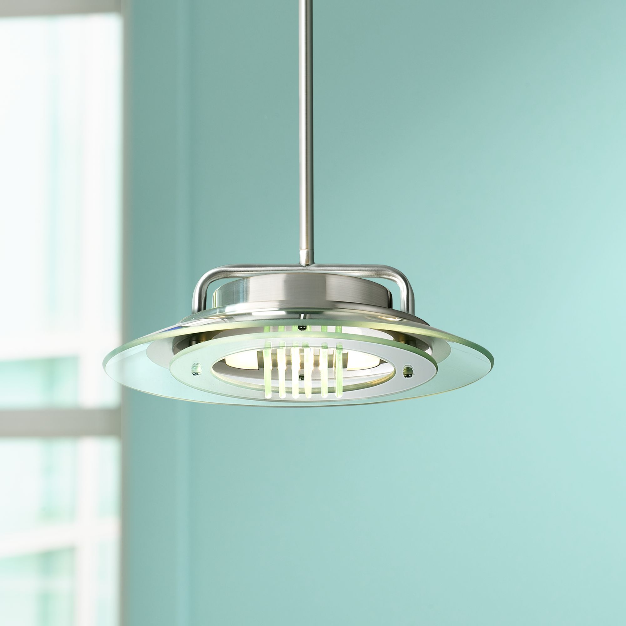 This mini pendant offers the perfect contemporary touch for kitchens, offices, alcoves and more. It features glass and brushed nickel finish elements for a sleek, streamlined look. Use several over a kitchen island for bright table surface illumination.