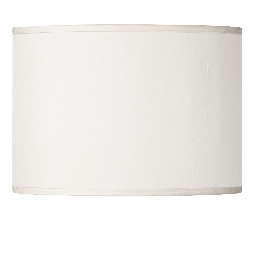 This gorgeous drum shade is made-to-order and is hand-assembled by our artisans in California. It features a cream faux silk fabric with a beautiful texture, self trim top and bottom, and a hardback style liner. The spider fitting is in chrome, and the shade comes with a matching chrome finish finial. The correct size harp is included free with this shade. By Possini Euro Design®.