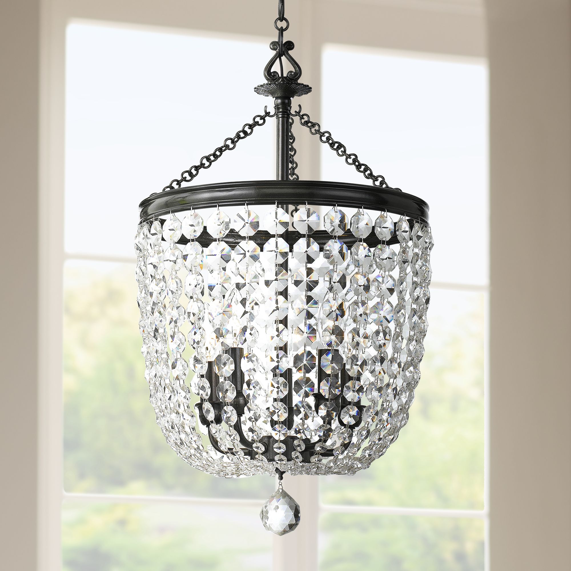 - Vibrant bronze finish steel frame. Clear hand-cut crystals.