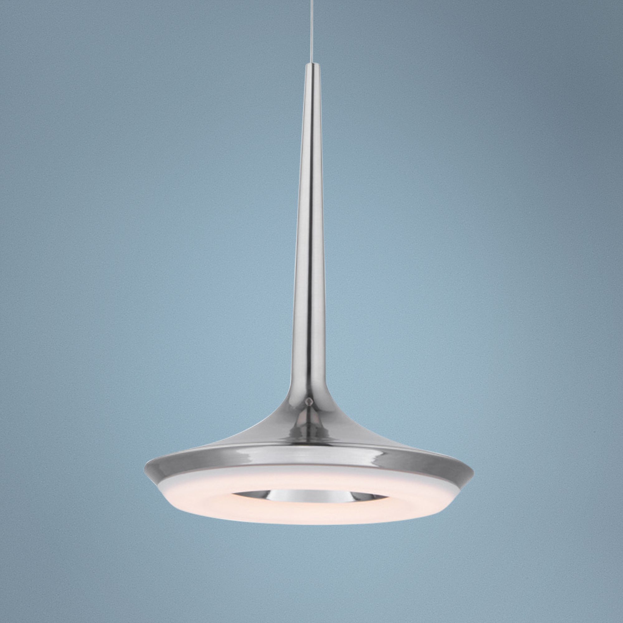 Working from a modern perspective, designers fashioned this satin nickel finish aluminum LED mini-pendant light to incorporate symmetry, silhouetting, and an elegant artistic effect. With a white acrylic diffuser, this hardwired, energy-efficient mini-pendant from the Enterprise collection by W.A.C. delivers targeted lighting to a compact space as it adds a stylish decor element that adopts a hint of retro fare. Take advantage of height adjustability, and opt for a dimming feature with the separate purchase of an electronic low voltage (ELV) or 0-10V dimmer.