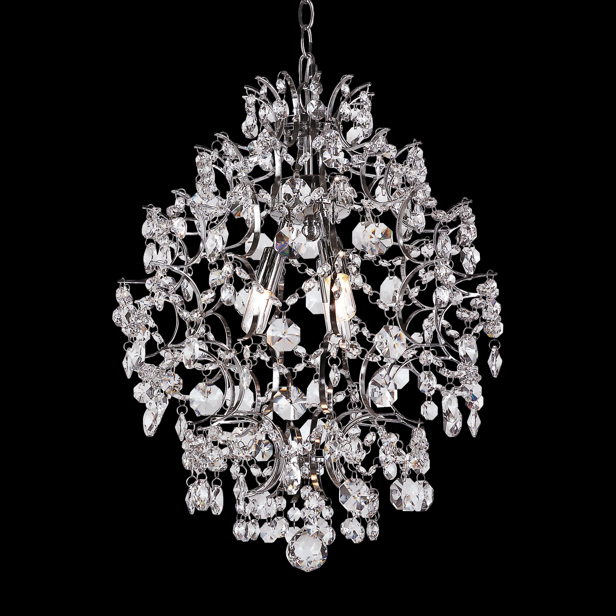This polished chrome 3-light chandelier by the Enna Collection shines from a bright hive of elegance. A center halogen illuminates the strands of crystal beads with impossible sparkle. A fabulous lighting showpiece that works with any decor.