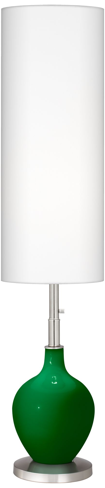 Welcome exquisite color and design to your home decor with this Color + Plus™ glass floor lamp. The design is hand-crafted by experienced artisans in our California workshops with an Envy green designer high-gloss finish. The look is topped with a stylish white linen shade, and punctuated with contemporary brushed nickel finish on the stand and neck. Lamp base U.S. Patent # 8,899,798.