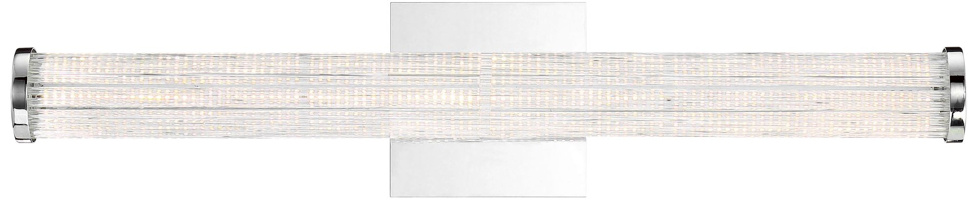 Explore a detailed design-friendly look for a lighting choice in contemporary spaces. Eurofase crafters blend clear glass with a texturized aesthetic and shiny chrome finish metal to keep up with the most energetic style motifs. This medium chrome and clear glass bath light offers the energy efficiency of LED lighting and may be installed vertically or horizontally for custom effects.