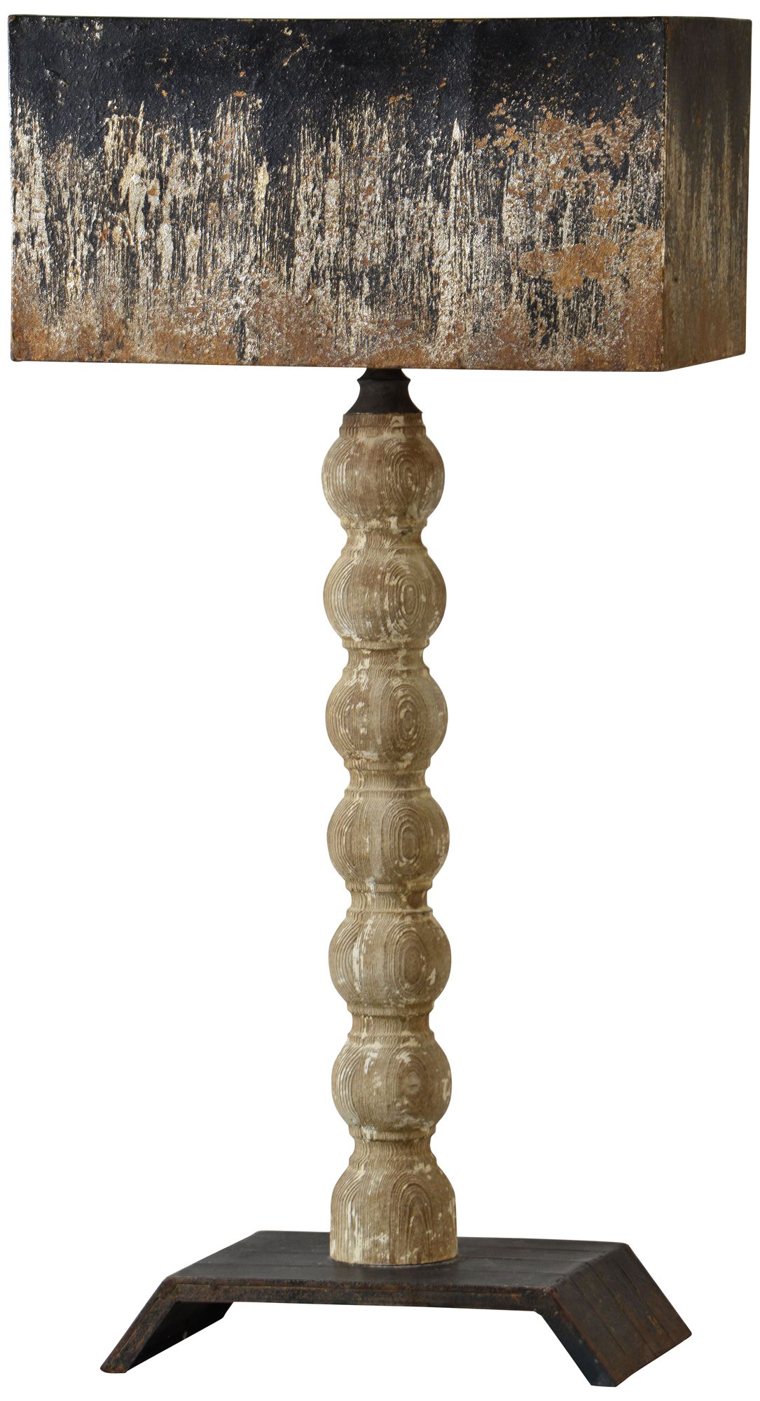 Draw all eyes to a console or side table with this intriguing country cottage metal table lamp. Its beaded-style post rests atop and angular, elevated base to bring rich dimensional flair. Natural whitewash wood finish contrasts perfectly with metal elements like a rectangular shade to create a lovely, aged look and feel.