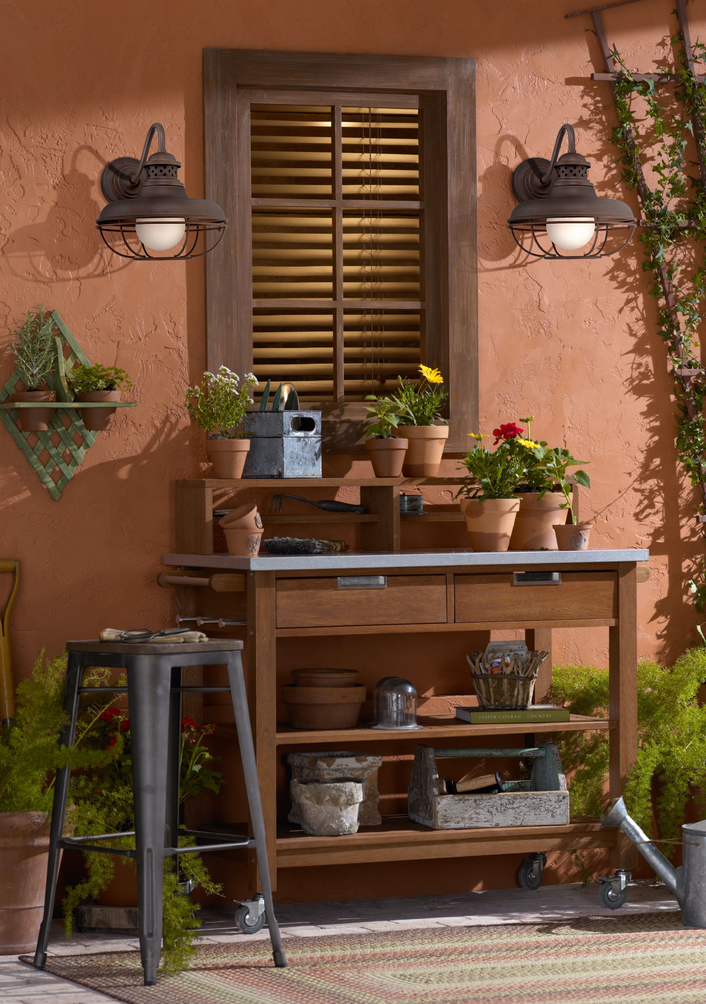 - Rustic outdoor wall light inspired by industrial and farmhouse barn lights. From the Franklin Iron Works™ brand.