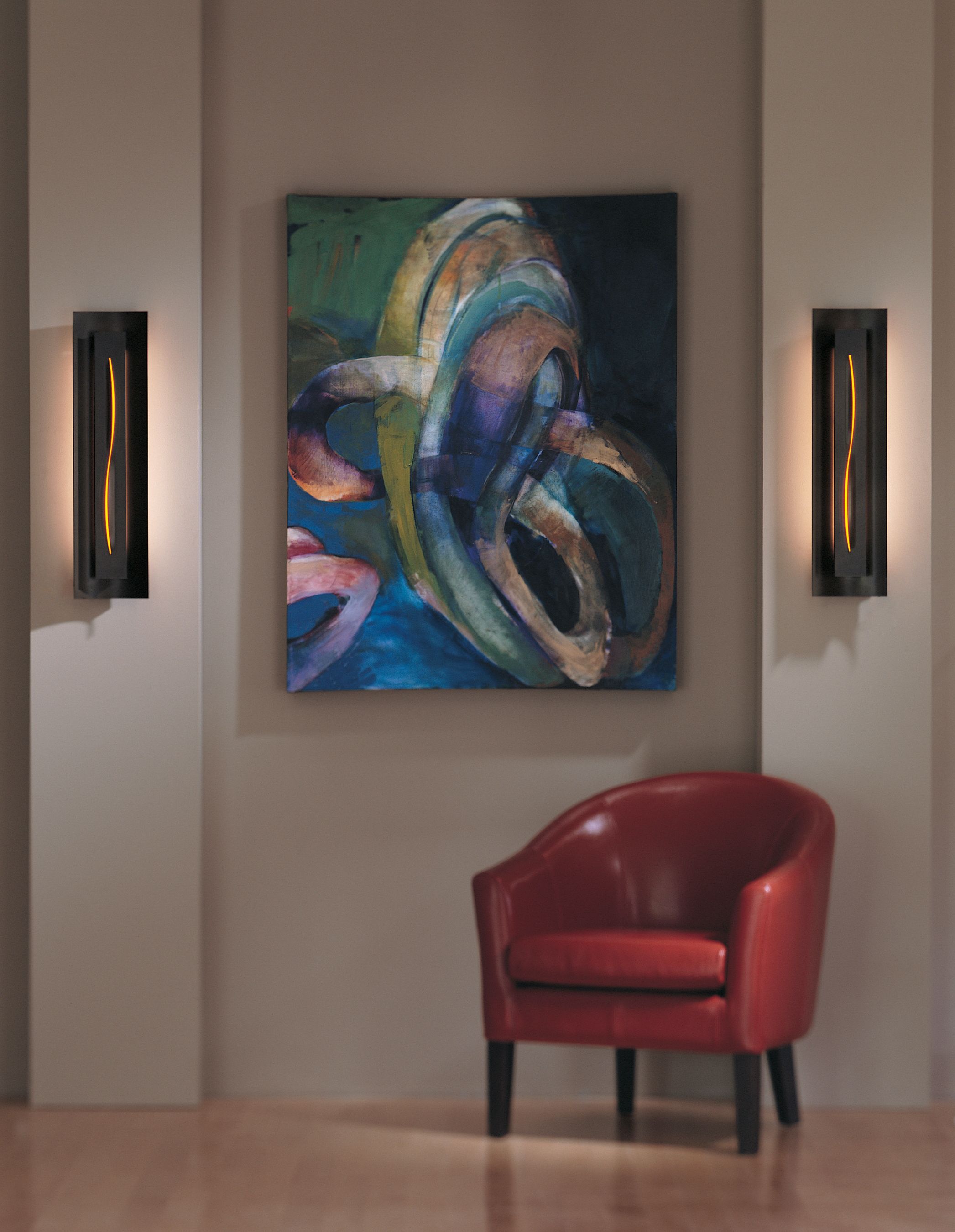 Hubbardton Forge combines time-honored techniques of hand-craftsmanship with elegant design to create wonderful lighting fixtures. This attractive wall sconce features a dark smoke finish and amber glass. The modern sconce design is a striking addition to your decor.