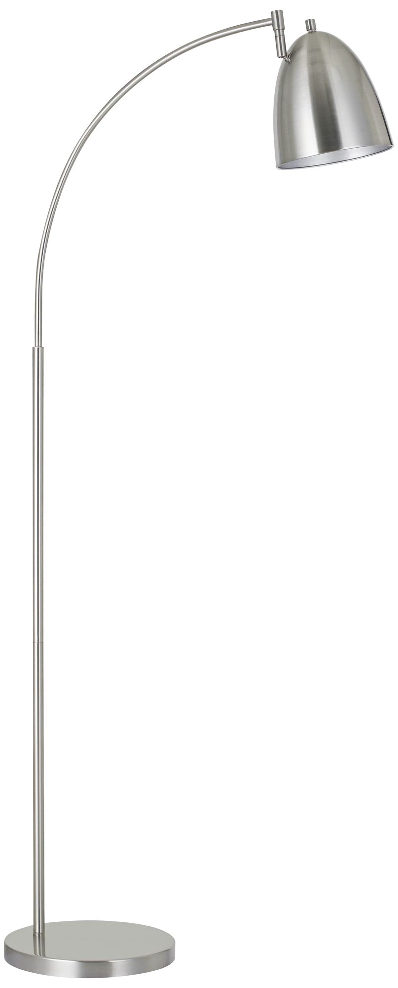 Crafted from metal, this Garnett metal arc floor lamp by Cal Lighting is designed to fit in with a contemporary decor. The brushed steel finish highlights the design for versatility and neutral elegance. A metal shade puts the finishing touches on the design for detail and personality.