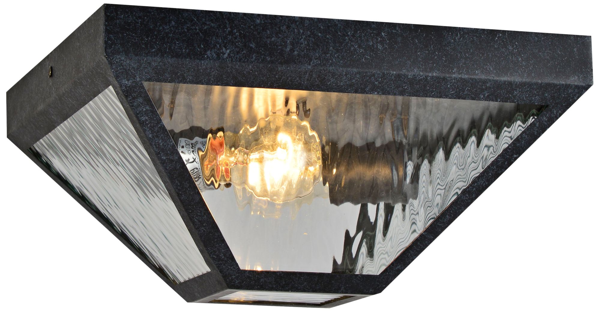 Crystorama is proud to present its Glacier collection, an elegantly crafted assortment of outdoor lights by Brian Patrick Flynn. A matte black charcoal finish over steel construction is accentuated by water glass panels and a geometric shape, enhancing the subtle beauty of this two-light outdoor ceiling light. With its tasteful appearance and luminous glow, this fixture looks lovely on a deck or patio and is sloped ceiling adaptable for your convenience.