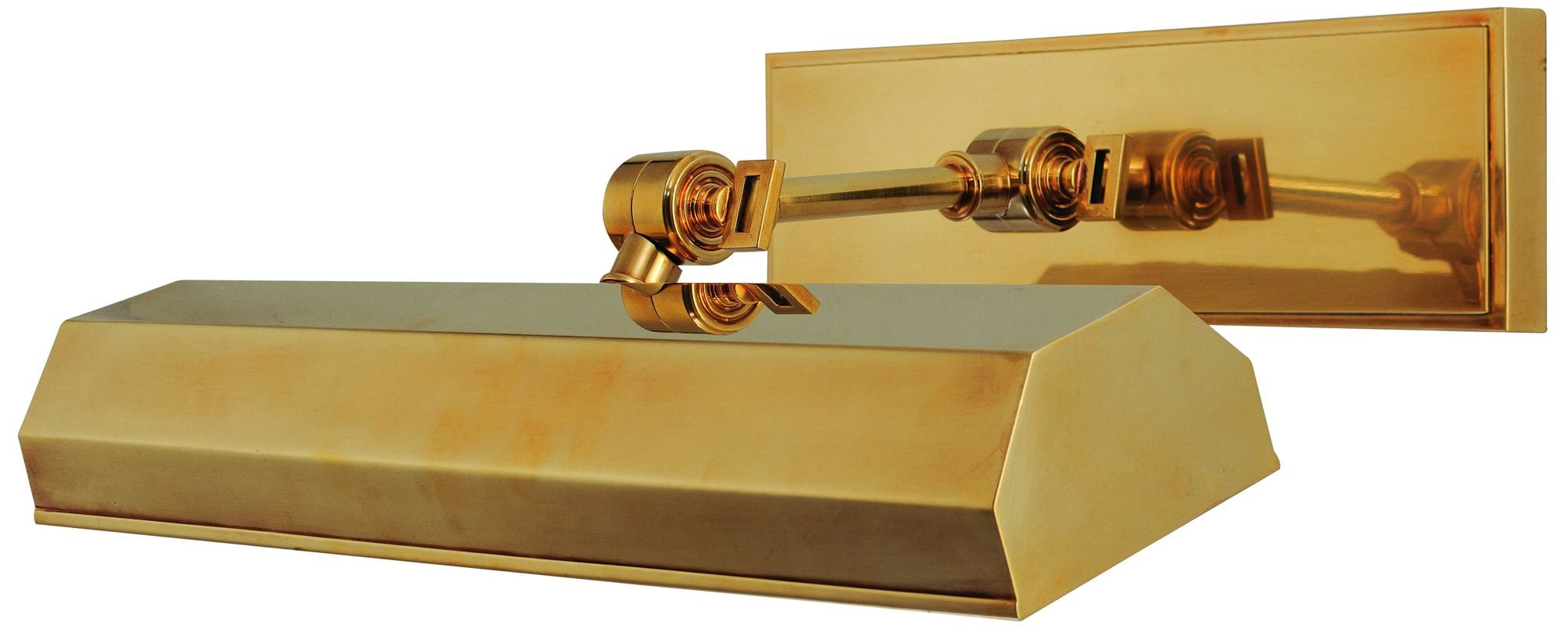 Add this solid cast brass picture light to your home for bright style. Finished in an aged brass, this design lets you illuminate artwork, special trinkets, sheet music and more. The arms conveniently rotate, so you can direct the light as you wish. Includes a standard cord and an in-line switch--simply plug into an outlet and enjoy! From the Hudson Valley Lighting Woodbury collection.