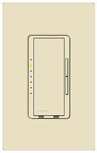 Light almond colored 600w preset single pole dimmer and screwless faceplate. Faceplate sold separately. By Lutron.