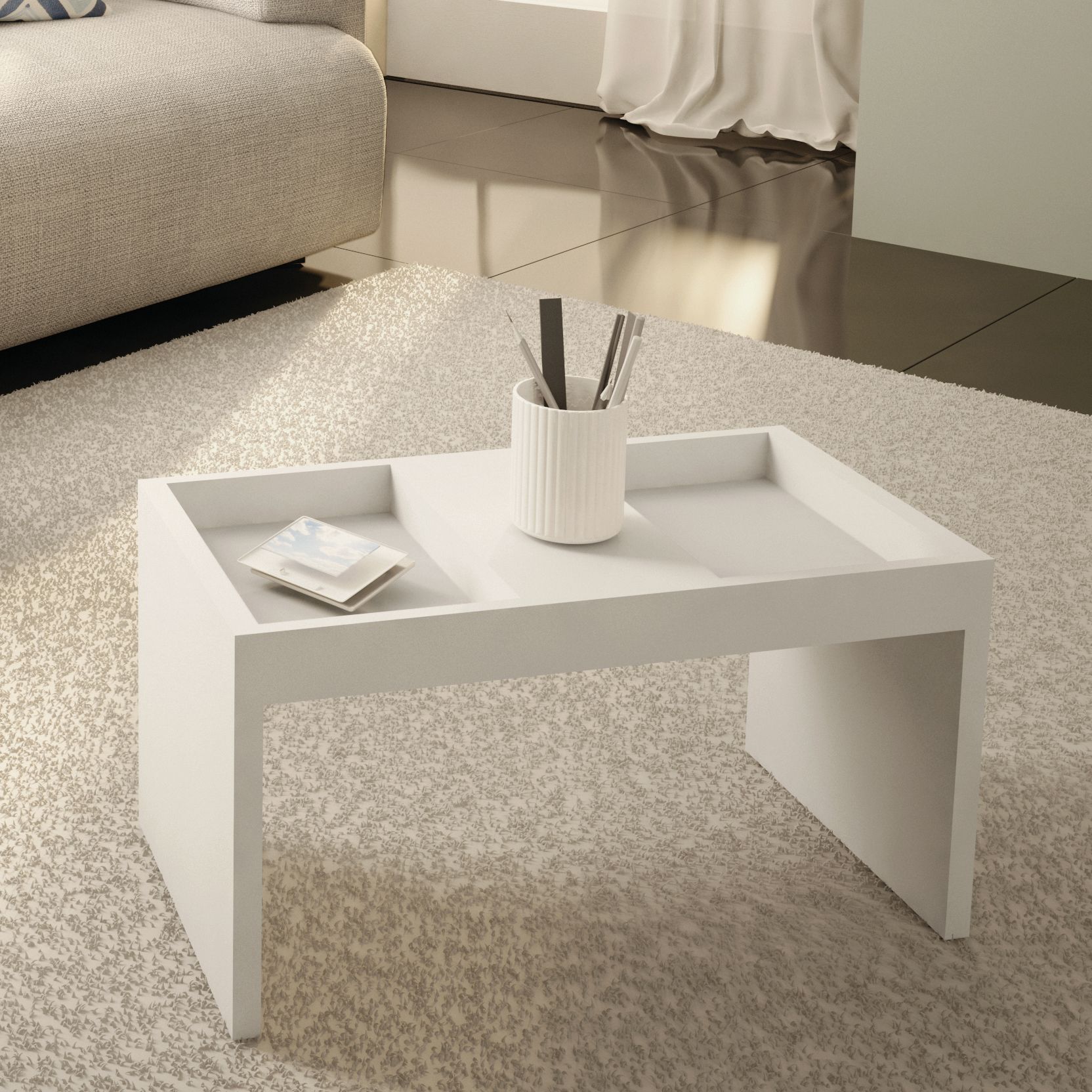 The design of this modern coffee table with magazine shelf from the Marine collection by Manhattan Comfort makes it a perfect fit for your living space. Crafted in a chic matte white finish, this table features one shelf for magazine and newspaper usage and has the versatility to be used as either a coffee table or very tall end table in the right space. You can stash it against a sofa or bed for easy access and usage, and it's perfect anywhere from a bedroom to a home office to the living room or den.