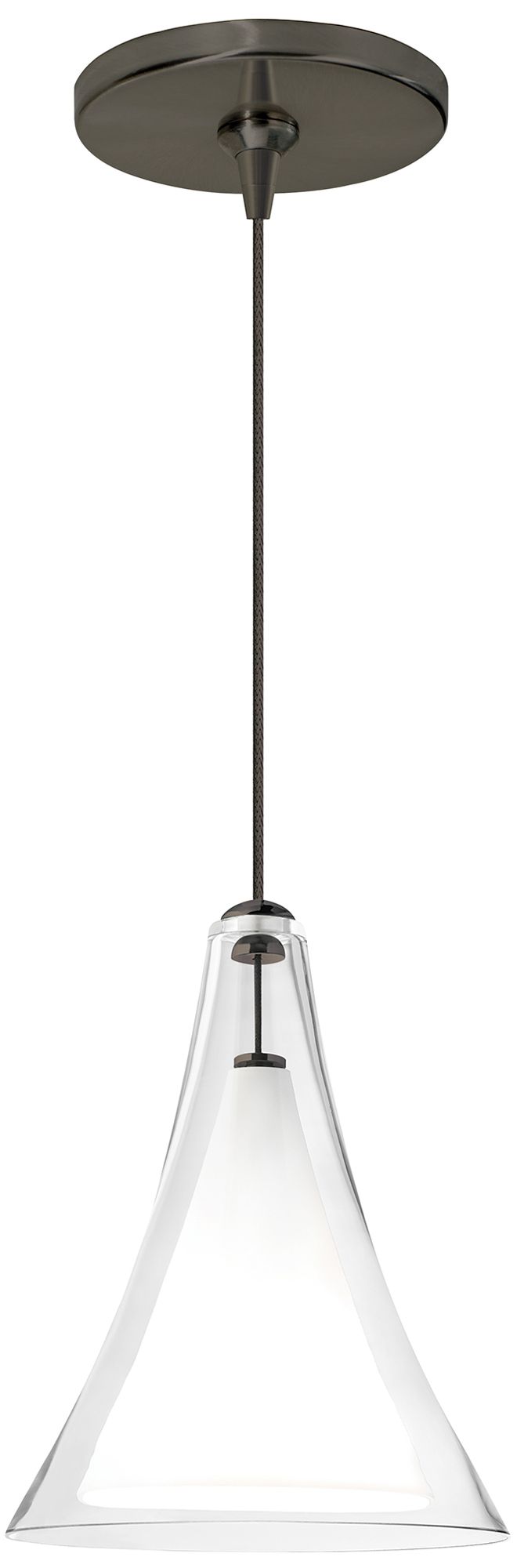 A graceful silhouette and ultra modern appeal highlight this mini pendant from the Melrose collection by Tech Lighting. Its conical shade offers a sparkling clear glass shade with an inner diffusor dressed up with machined metal detail. Its antique bronze finish canopy brings a warm quality to this artful mini pendant, which is dimmable with a separately purchased low-voltage electronic dimmer.