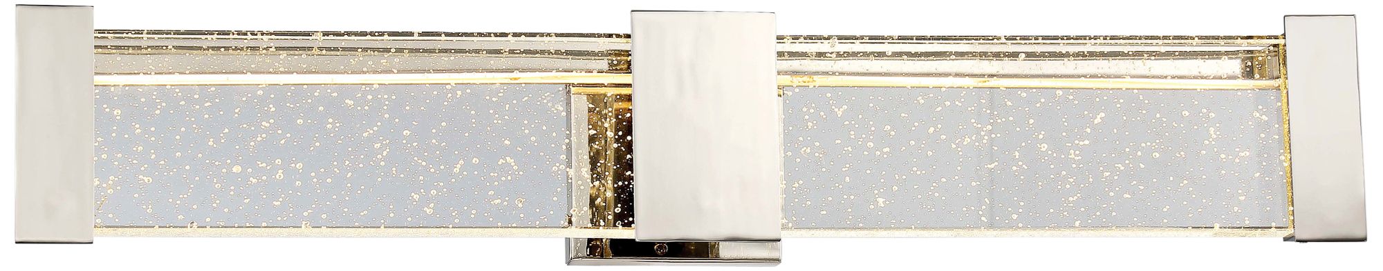 This energy-efficient LED bathroom wall light will add a sparkling style over a vanity or sink space. Designed for a modern space, it features boasts a polished nickel finish and clear seeded glass that combine to perfection. This fixture requires horizontal installation.