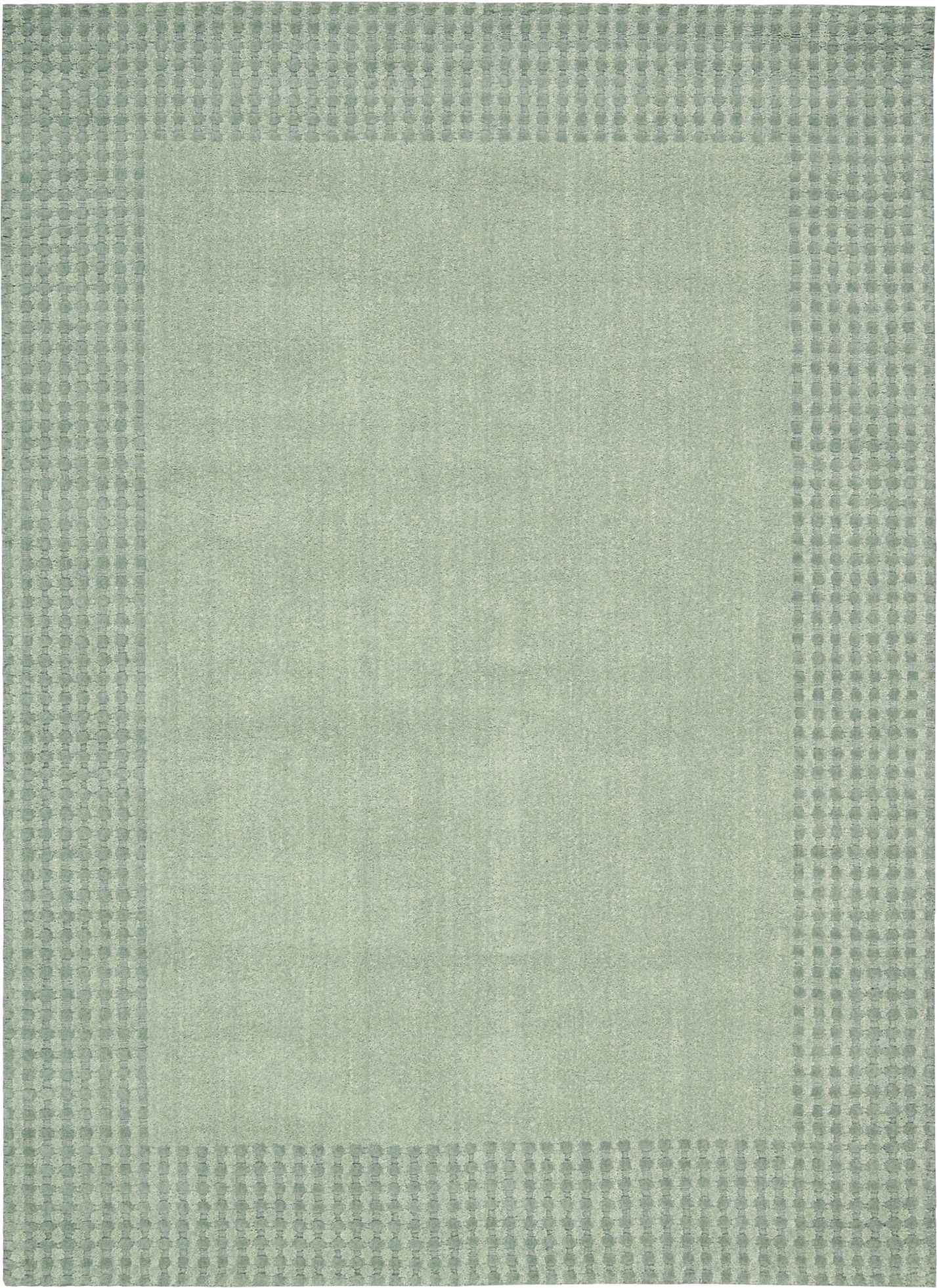 Add an elegant touch of character to your contemporary living space with this transitional rectangular wool area rug. Beautifully hand-loomed, this plush coastal village rug design is pleasantly made from 100 percent wool. In a charming mist green color tone, this demure design features a wide tonal dot pattern border that adds intrigue. Part of the Cottage Grove collection by Nourison for Kathy Ireland.