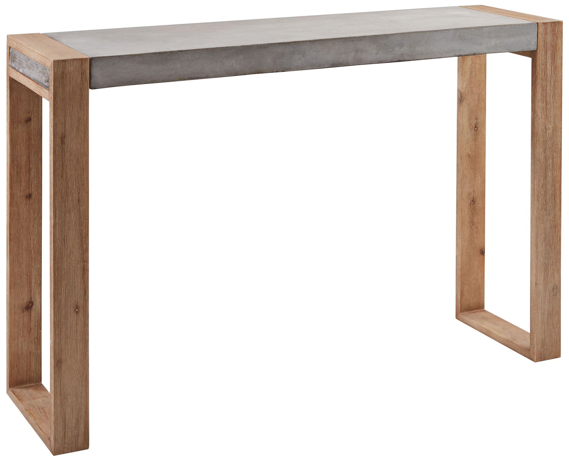 A slightly chunky design complements earth-inspired materials including sleek acacia wood with a light finish. Its surface is crafted from concrete with a tasteful and artistic Atlantic brushed finish. This concrete and acacia wood console table is a stellar product from Elk Lighting.