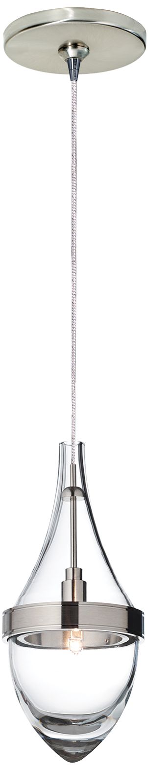 Taking as its inspiration a vintage European perfume bottle, this mini pendant light is pure elegance with chic clean lines. The Parfum low-voltage mini pendant light in satin nickel finish with clear glass shade from Tech Lighting combines the modern and the timeless. This is a stunning piece for a hallway, dining room or entryway.