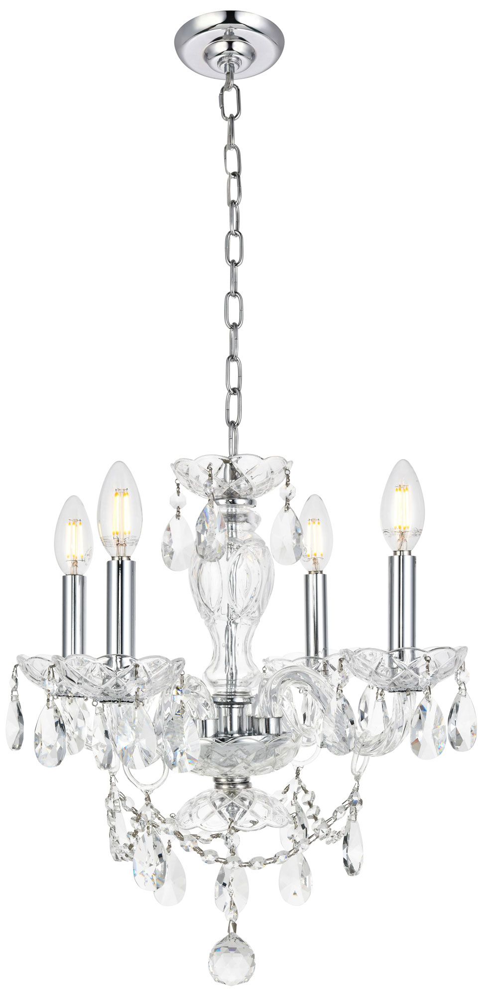 - Transitional dimmable four-light crystal chandelier from the Princeton collection.