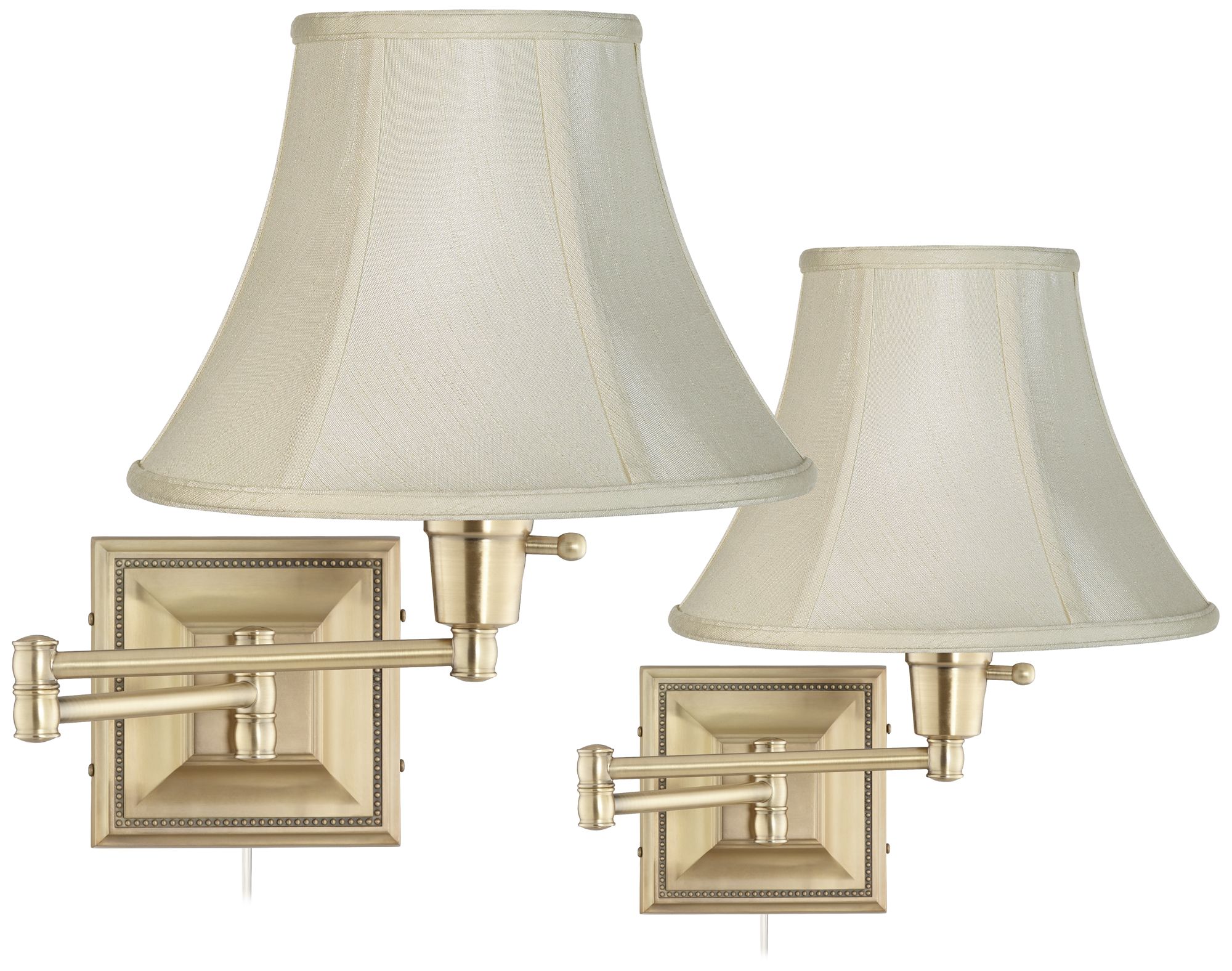 These brushed brass finish swing arm wall lamps are perfect for bedrooms or seating areas. Enjoy the ideal lighting level thanks to the included full-range dimmers. Each lamp comes with six feet of clear cord that plugs into any standard wall outlet.