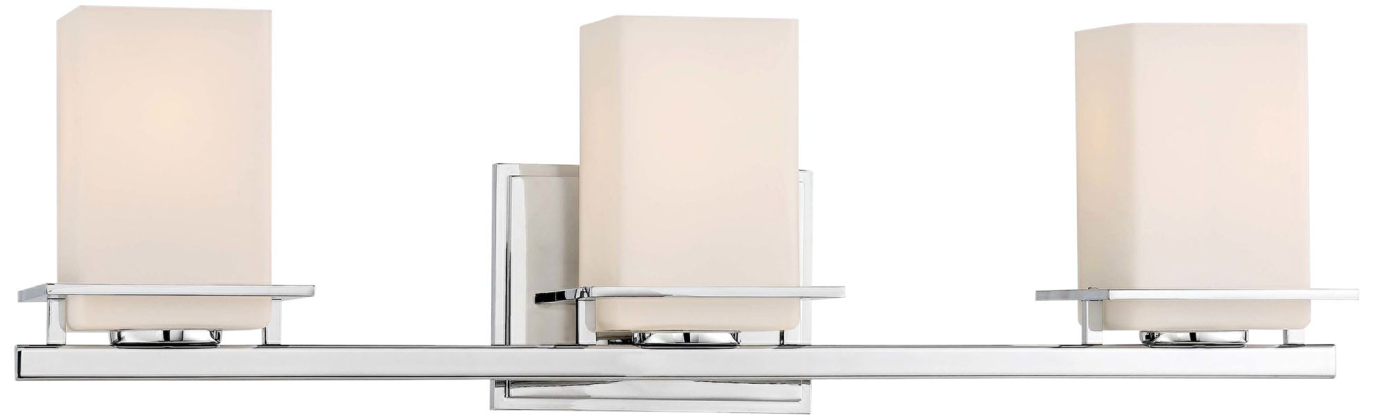 Subtly contemporary, yet suitable for a variety of motifs, this fixture from Minka Lavery is beautifully versatile. Clean lines on its rectangular shaped chrome finish wall mount jive with a trio of boxy shades that diffuses soft lighting. This geometric chrome finish three-light bath light rounds out a relaxed, inspiring decor.