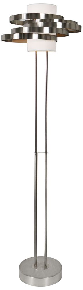 Take your lighting to new heights with this metal floor lamp design from Van Teal. Crafted with a tall, slender silhouette and a brushed nickel finish, the lamp is a fantastic upgrade in the modern living area or home office. Its linen hardback shade is cylindrical and encircled with caged metal rings that draw the eye.