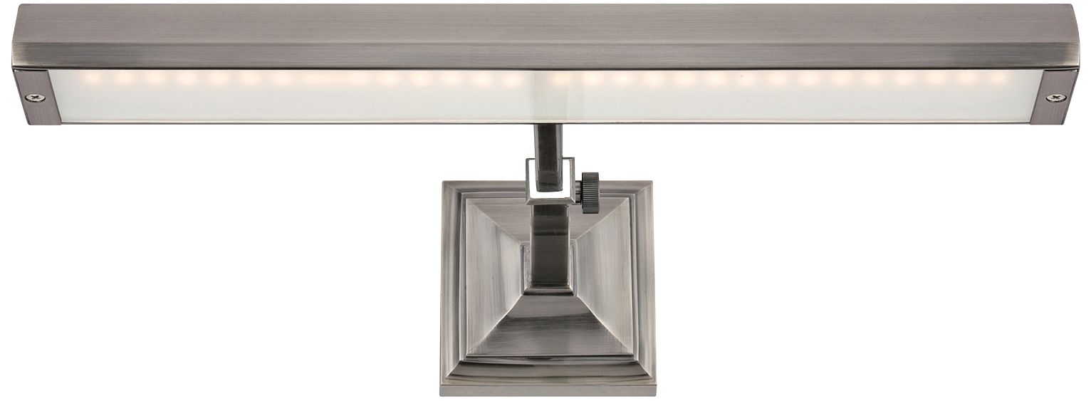 This versatile antique nickel picture light illuminates a large painting or other flat wall art with its bright, replaceable LED module. UV-free Chronophoton technology won't harm artwork, displaying it in full vibrant colors. The head moves 90 degrees up and down to create perfect highlights, and the fixture is dimmable with an ELV dimmer (not included). An energy-saving accent from WAC lighting.